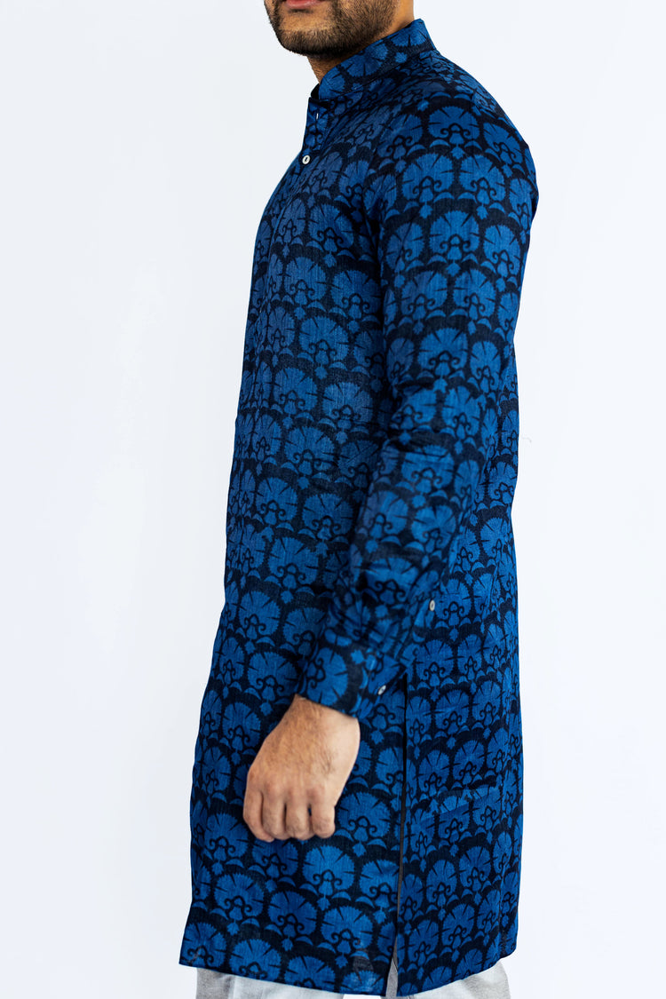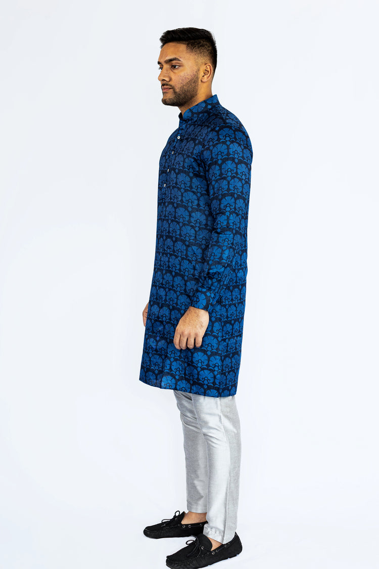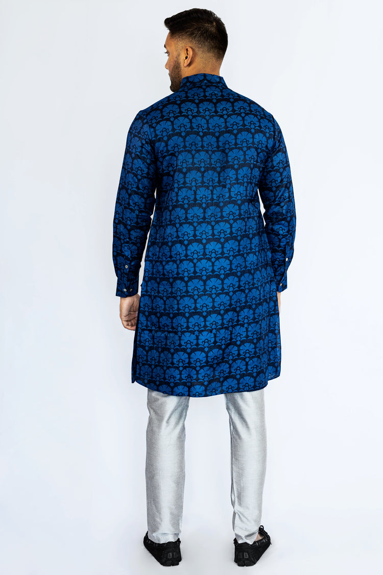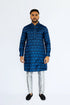 This deep blue kurta set is made from a comfortable and elegant tussar silk and viscose blend providing a sleek look.